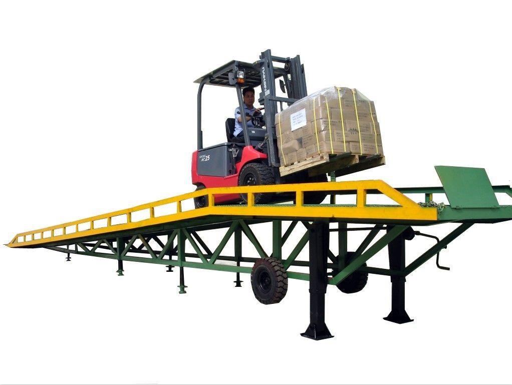 登车桥,移动装卸平台主要用于无装卸设备的货台及流动装卸场所,可与叉车配合使用,是货物装卸专用辅助设备。产品可达到的高度为1.1米至1.8米,可以根据货车高度进行调节,是装卸货物不可缺少的升降液压设备之一。移动式液压登车桥的主要作用是在地平面与车厢之间搭起一座桥,有了它,叉车能直接从地面携带货物驶入汽车车厢内部,进行批量装卸作业。使用时前板架在货车车厢上,起到承载重量的作用,减少了货物重量对液压设备的压力,保证了液压登车桥的使用寿命,从而达到长期使用的目的。借助液压登车桥,叉车能直接驶入汽车集装箱内部进行批量装卸作业。