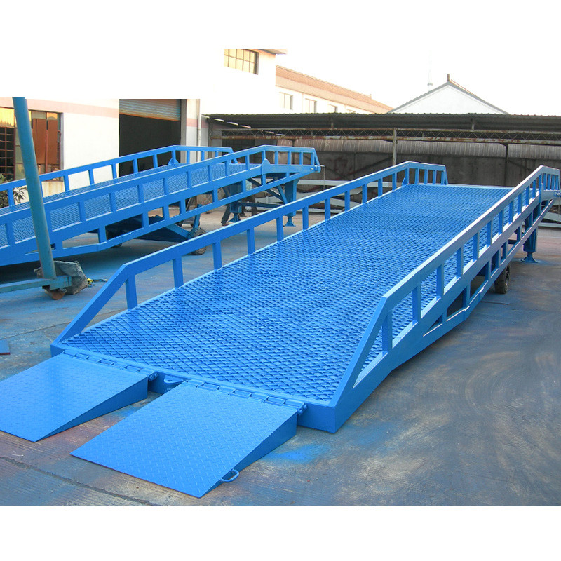 移动式液压登车桥主要用于无装卸设备的货台及流动装卸场所,可与叉车配合使用,是货物装卸专用辅助设备。产品可达到的高度为1.1米至1.8米,可以根据货车高度进行调节,是装卸货物不可缺少的升降液压设备之一。移动式液压登车桥的主要作用是在地平面与车厢之间搭起一座桥,有了它,叉车能直接从地面携带货物驶入汽车车厢内部,进行批量装卸作业。使用时前板架在货车车厢上,起到承载重量的作用,减少了货物重量对液压设备的压力,保证了液压登车桥的使用寿命,从而达到长期使用的目的。借助液压登车桥,叉车能直接驶入汽车集装箱内部进行批量装卸作业。